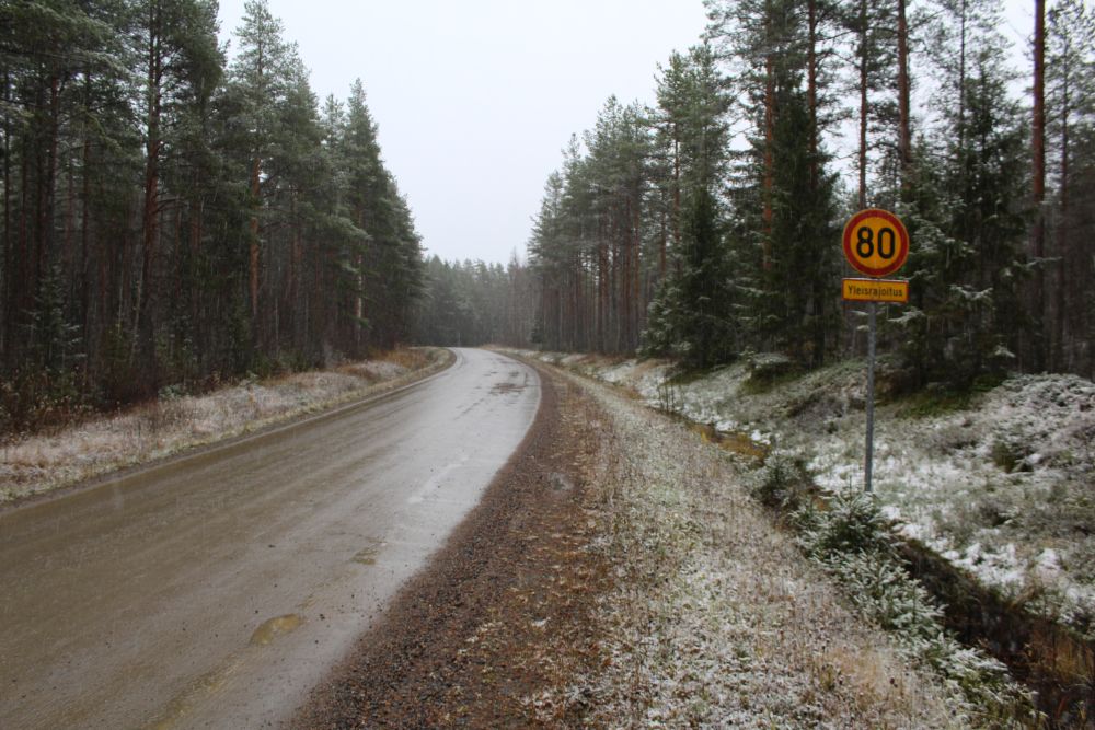 Museotie muuttuu pian Piippolan keskustan jälkeen hiekkatieksi. Tien nopeusrajoitus tuntuu erikoiselta. Minun on vaikea ymmärtää, kuinka tätä mutkittelevaa hiekkatietä voisi turvallisesti ajaa 80 kilometrin tuntivauhtia.