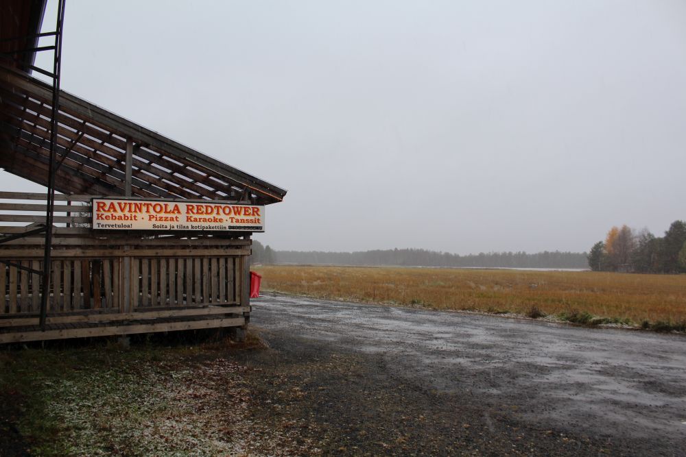 Sitten palaamme takaisin keskustaan päin ja käännymme työväentalon kohdalta Leskeläntielle. Kun Leskeläntietä on ajettu pari sataa metriä, on tien vasemmalla puolella ravintola Redtower. En todellakaan olisi osannut odottaa, että tällaisen kylätien varrelta, pellon reunalta, putkahtaisi yhtäkkiä näkyviin ravintola. Ja vielä varsin mielenkiintoinen sellainen.