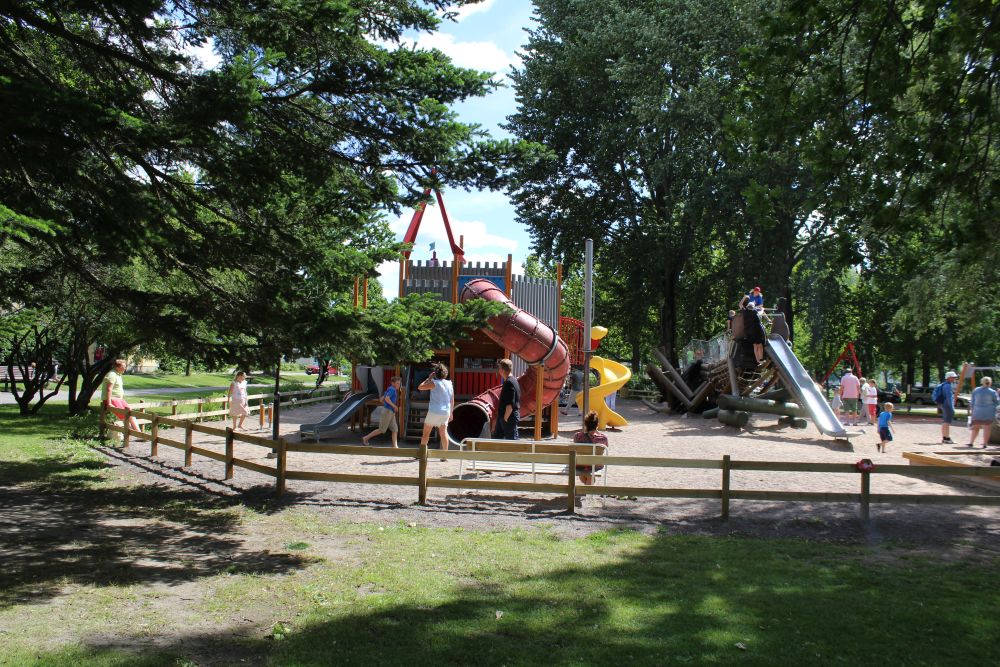 Kirpputorin edustalta löytyy hauska pieni puisto. Tammisaaressa on selkeästi panostettu puistoalueisiin.